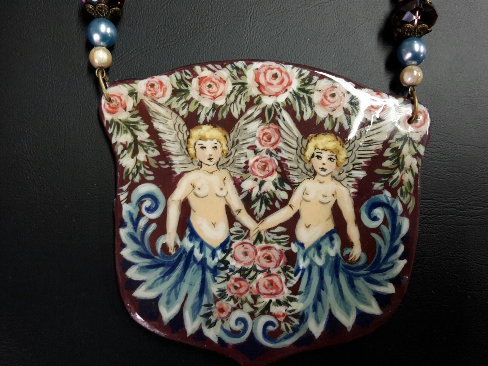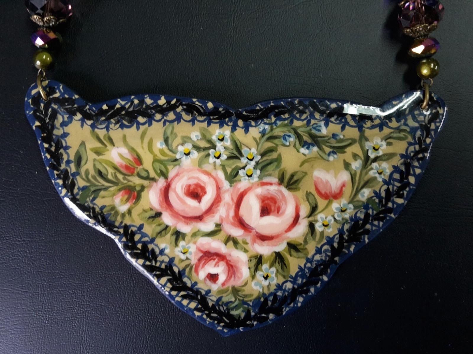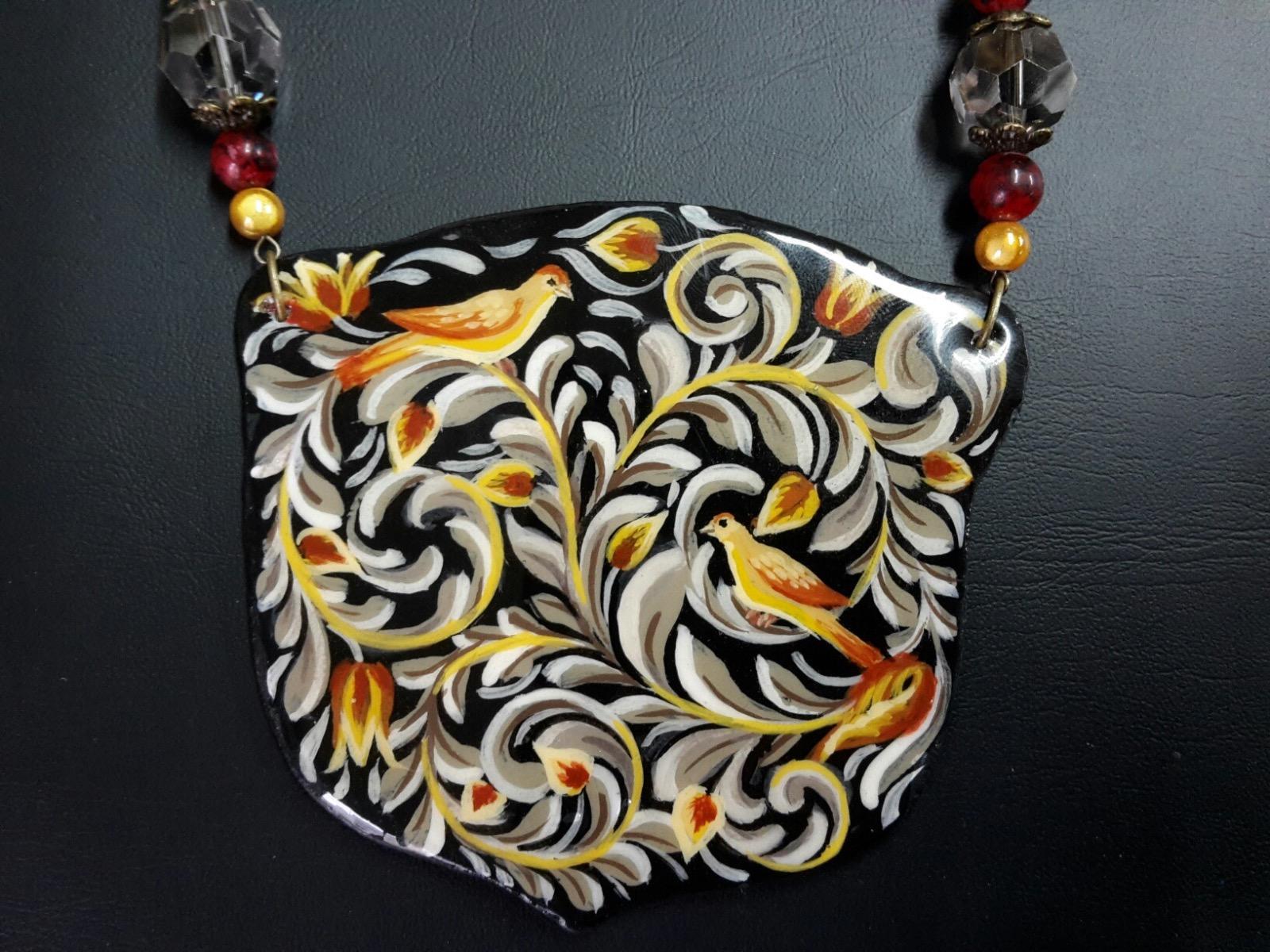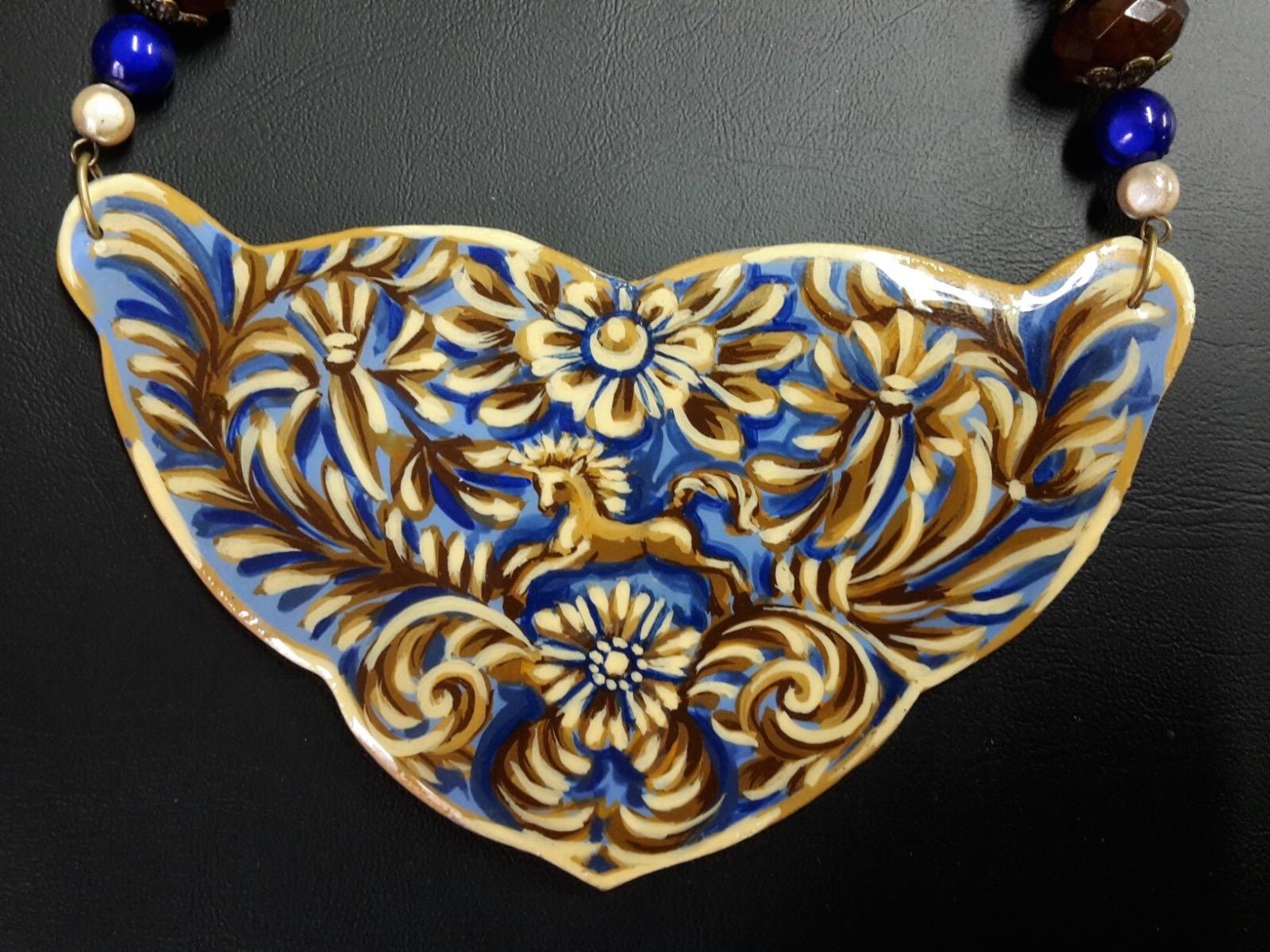 Quelques exemples de réalisations de colliers en bois peint, chaque pièce est unique!